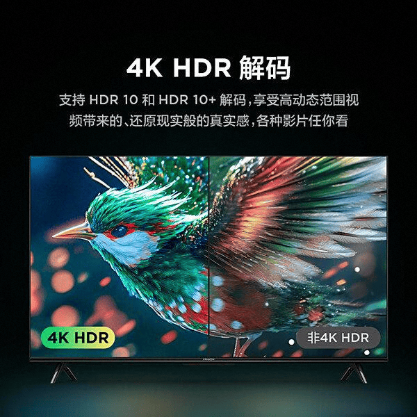 这款电视的画面表现相当出色,4K HDR超高清搭配D65原彩色温和93% DCI-P3色域,色彩还原真实,画面生动。而且它支持HDR10和HLG解码,观看体验更上一层楼。